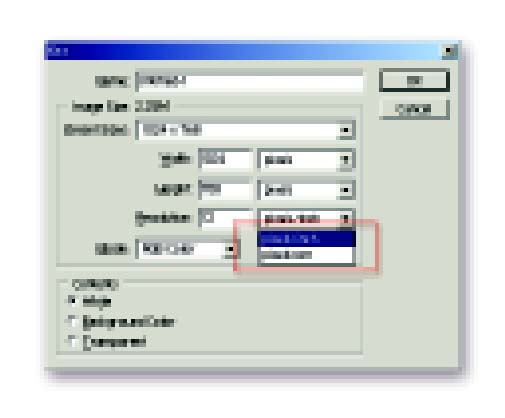 由開啟新檔(New)指令之對話框中,可選擇設定所須指定 的解析度單位名詞 | |||||||||||
